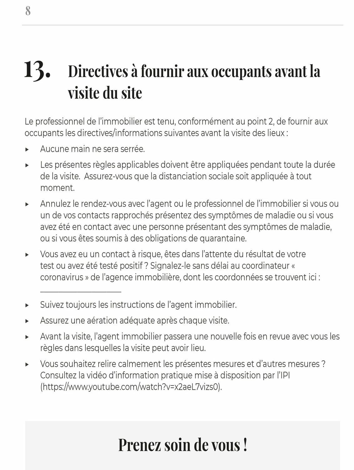 Nos associations professionnelles BIV et CIB ont travaillé dur pour s'assurer que les contacts que les agents immobiliers doivent nécessairement prendre pour effectuer des visites de sites, etc. en toute sécurité.
